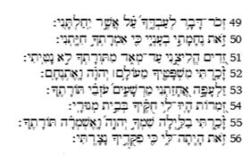 I versetti 49-56 sono strutturati nel seguente modo: A-B-A1-B1-A2. Il verbo ricordare e il lessema consolazione associano A-A1-A2. Il termine Torah associa B-B1 e ulteriormente B-B1-A2.